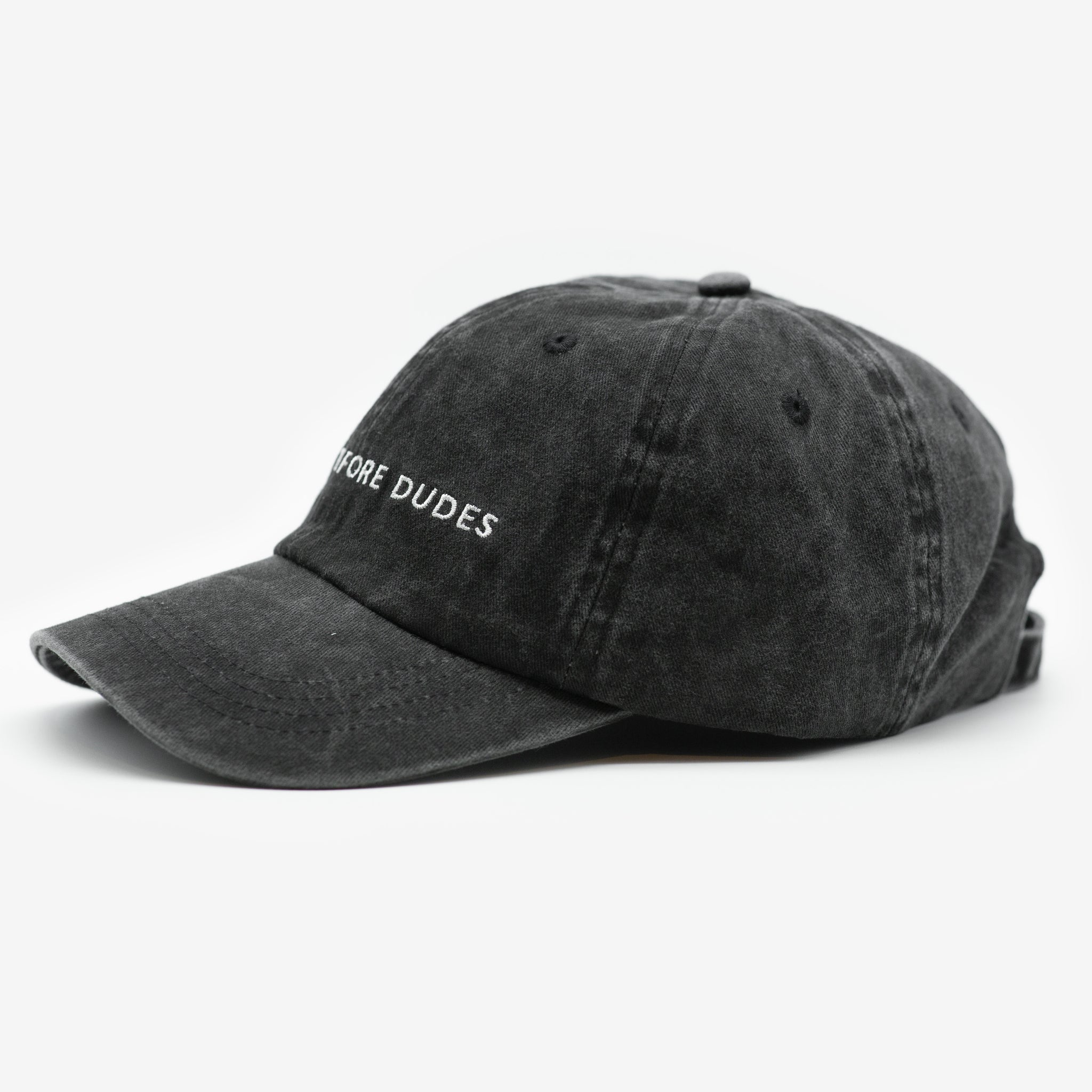 Trendy Black Denim Cap, here for you to declare your love for dogs with the quote - "Dogs Before Dudes". If your furry friends hold a special place in your heart, our stylish and trendy Black Denim Cap is the perfect way to express your love and dedication for dogs.